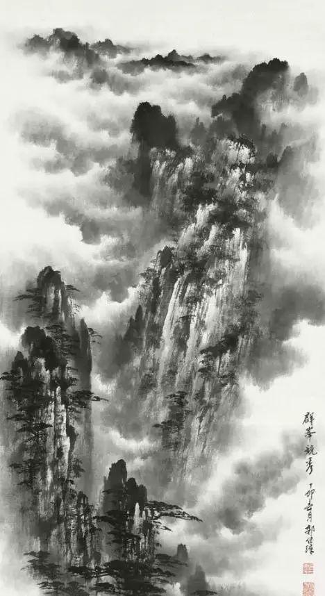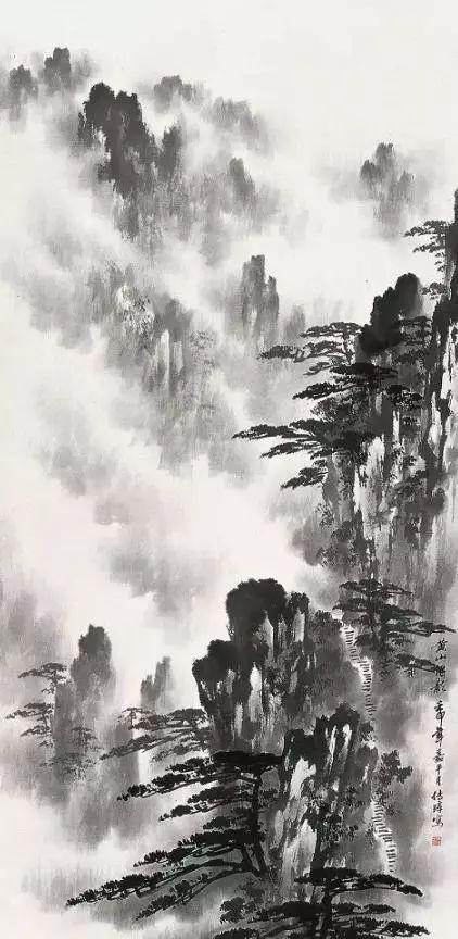 郭传璋画擅黄山,着意在峰、松、云、瀑下功夫,黄山之奇正在于此。这是组成黄山私有田地好意思的基本成分。这诸成分中,郭传璋对云的形容又倍加效用。