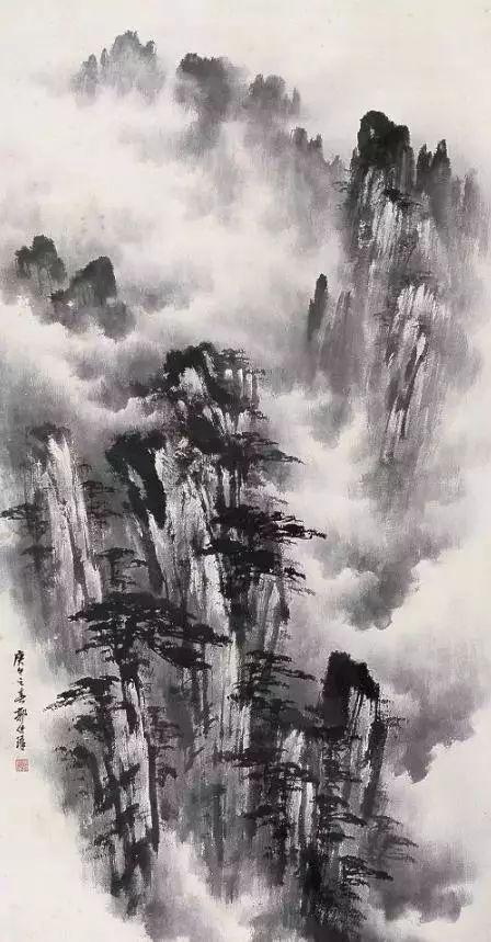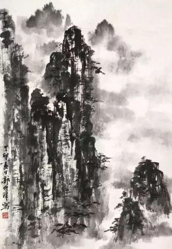 郭传璋画云,不光是留出空缺就算作云,而是要画出云的质感、量感、空间感、流运感,不光是渲染、况兼要见笔。从而以云的厚薄、明晦、流落烘出山岳的藏露、遐迩温顺势。动笔时阐明云的档次,厚薄现象,笔笔落在云层的边际上,酿成了谈障碍多变,关系词莫得勾画线条的鸿沟,这是把传统的勾云法和染云法王人集起来的一种创造。这种关节,郭传璋自谓为\"写云法\"。